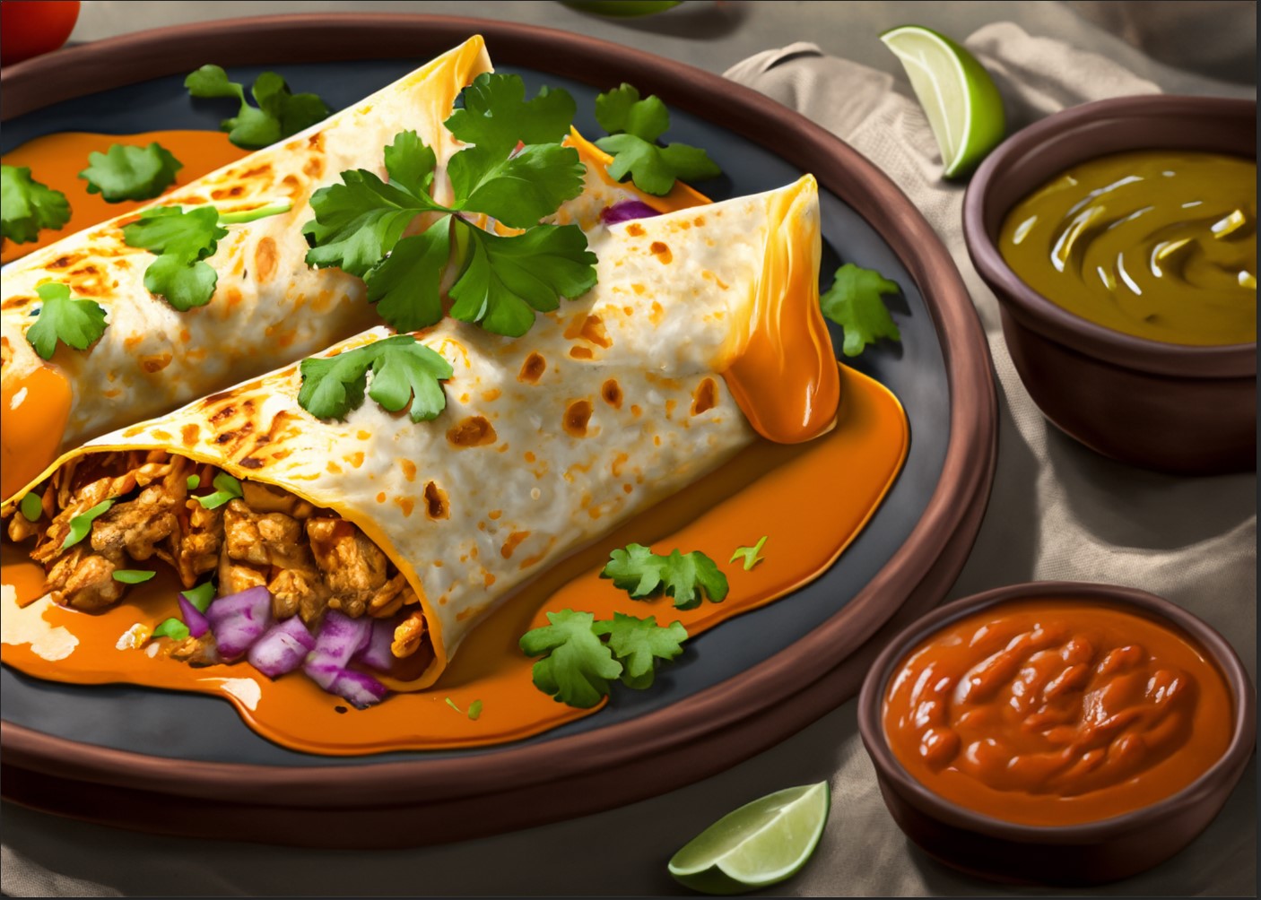 Chicken so tender it might make you weep, wrapped in handmade tortillas, and smothered in our secret mole sauce. - $15.99 - 480 calories